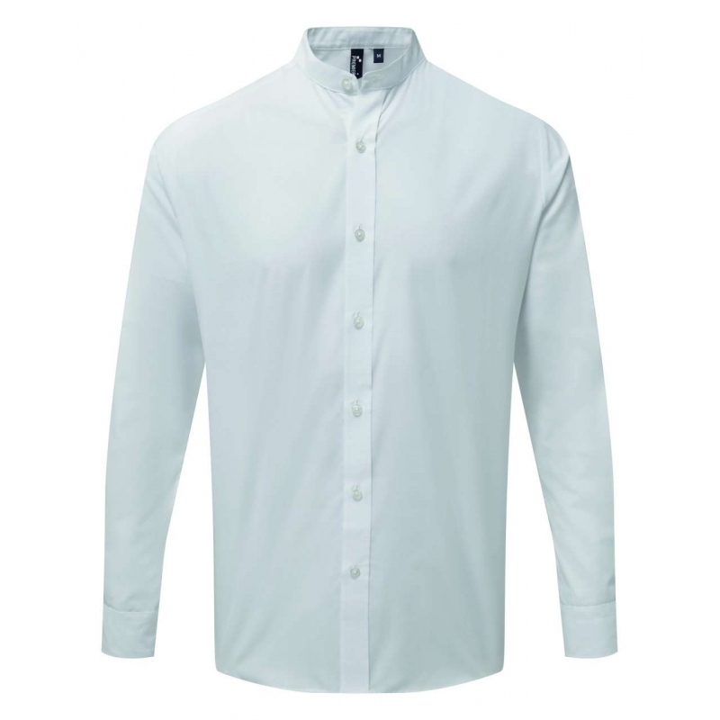 BANDED COLLAR 'GRANDAD' LONG SLEEVE SHIRT pr258wh-l White L